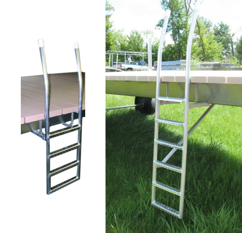 Locks in anywhere along the edge of the V-Dock deck in 2 foot intervals. No drilling. 4-rung and 6-rung available.