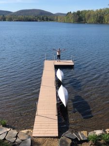 I wanted to thank you for the wonderful dock!  Last week I built the components and today we installed it!  Your company did a fantastic job laying out the procedures for putting the different components together – simple enough for a guy like me to assemble it with a little help!  Your suggestion to use a inner tube to float the pieces was great.  I also appreciate that your team members are willing to get on the phone and answer my assembly question.  I proudly placed one of the V-Dock stickers of the lake side of the dock so everyone could see where this great dock came from.