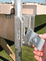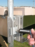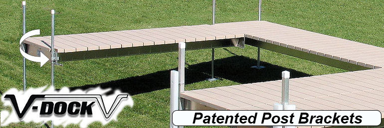 Discover the difference that expertise and dedication make to creating the best docking solution. The V-Dock difference doesn’t stop with our advanced roll on docks and sectional docks. We’ve created patented post brackets, too, sturdy and lightweight. No more straining your back to lift heavy, large posts out of the ground. The patented post brackets may be easily attached or removed. The exclusive V-Docks Break-Away Post Bracket is a component of many of the roll-on docks, with movable connecting pins created from sturdy and lightweight aluminum.
