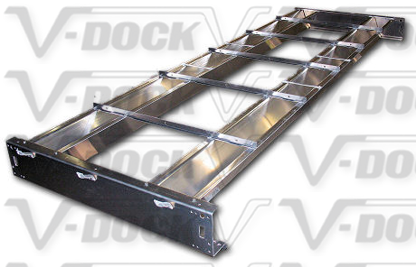V-Dock’s Roll-in-Docks use shorter sections and more wheel kits than the competition. That’s one more reason why a V-Dock is lighter and easier to roll. Using shorter sections also adds strength to the frame work, eliminating any side sway or bounce.