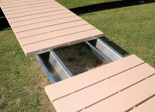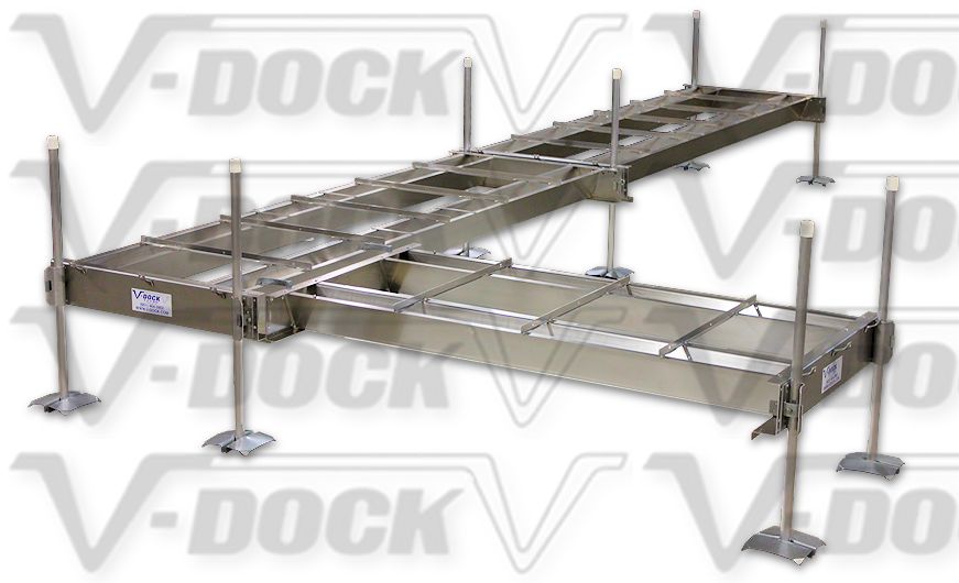 People sitting on the edge of a V-Dock, big or small, can swing their legs freely without hitting metal trusses and won’t get their foot caught in open framework.