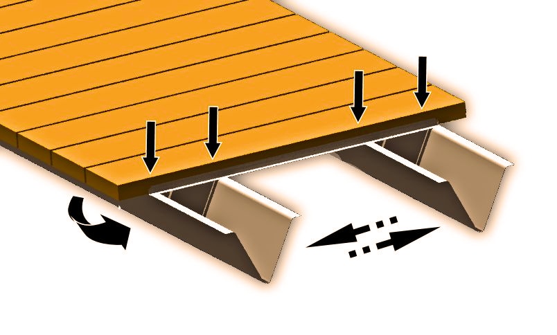 Parallel “V” beams provide continuous support along the decking to key areas, not just at the outer edges like traditional truss systems. V-Dock’s exclusive “V” beam structure is designed to absorb movement, virtually eliminating bounce and side sway.